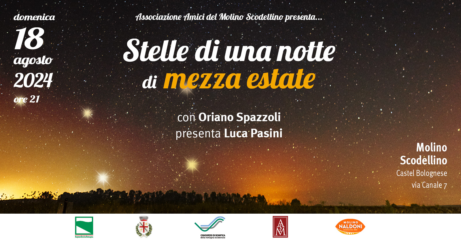 L'Associazione Amici del Mulino Scodellino è lieta di presentare un'altra fantastica serata sotto le stelle: "Stelle di una Notte di Mezza Estate".Durante la serata, avremo l'opportunità di esplorare l'affascinante mondo delle stelle e dei pianeti, guidati dalla competenza e dalla passione dei nostri ospiti. Sarà una meravigliosa occasione per immergersi nell'universo, osservare le stelle e… Continua a leggere Stelle di una notte di mezza estate