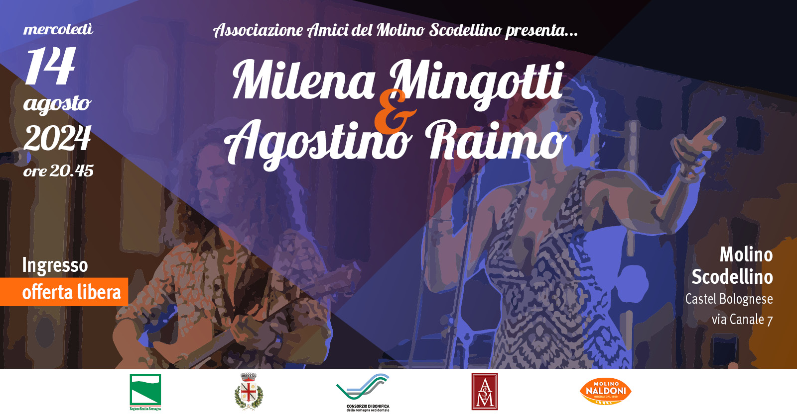 Mercoledì 14 agosto 2024, serata speciale di musica dal vivo al suggestivo Mulino Scodellino. Il duo "Milena Mingotti & Agostino Raimo" ci delizierà con un'esibizione unica, in cui le incantevoli canzoni di Milena saranno accompagnate dalla chitarra di Agostino. Conosciamo la Cantante: Milena Mingotti Milena Mingotti è una giovane cantautrice imolese. Dall’età di 13 anni… Continua a leggere Milena Mingotti & Agostino Raino